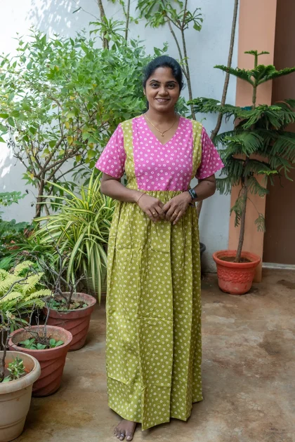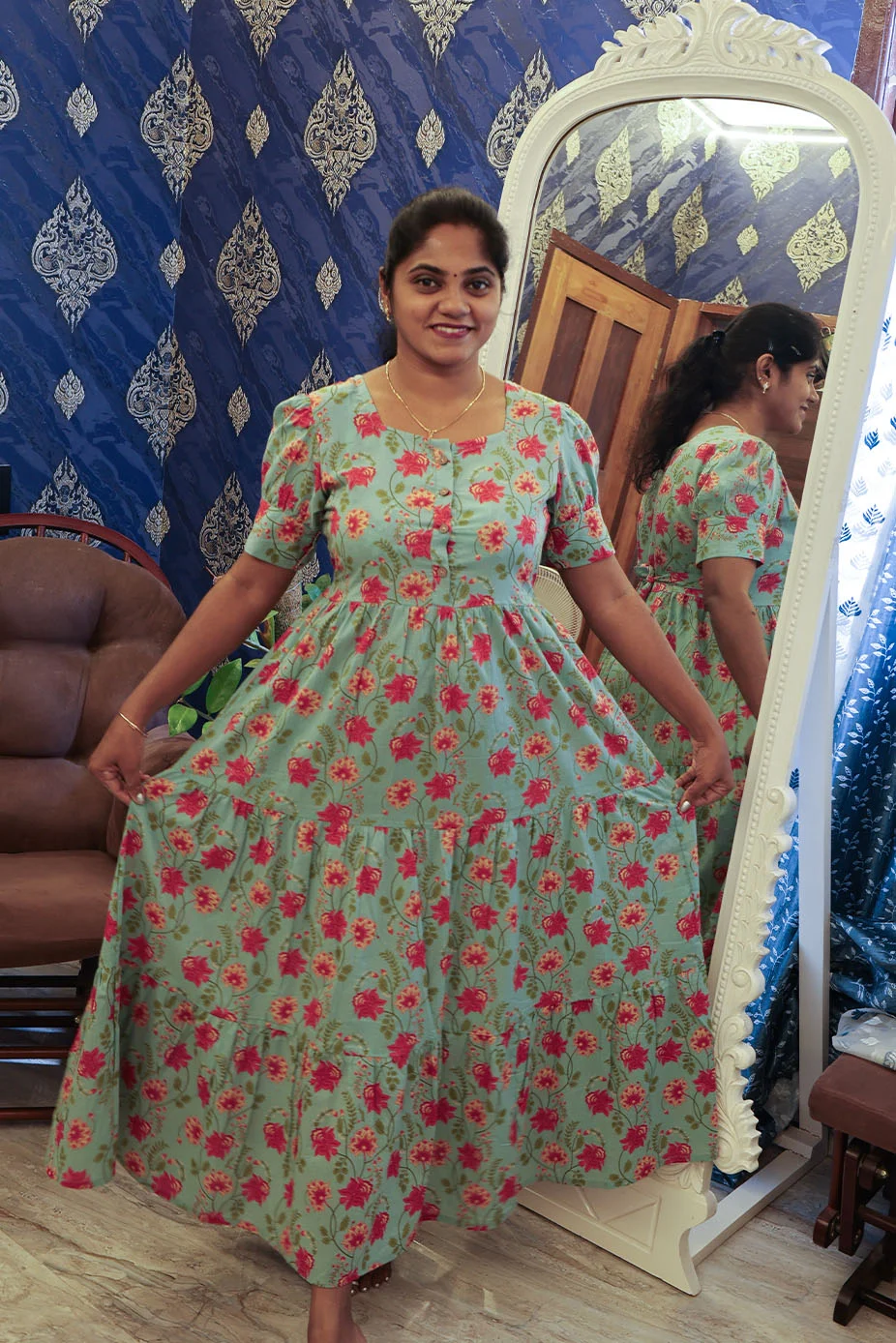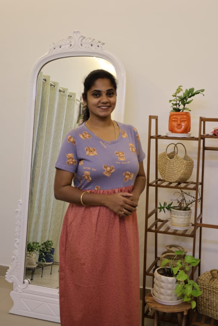 Cotton Nighty Non Feeding Pink with Emarold Green