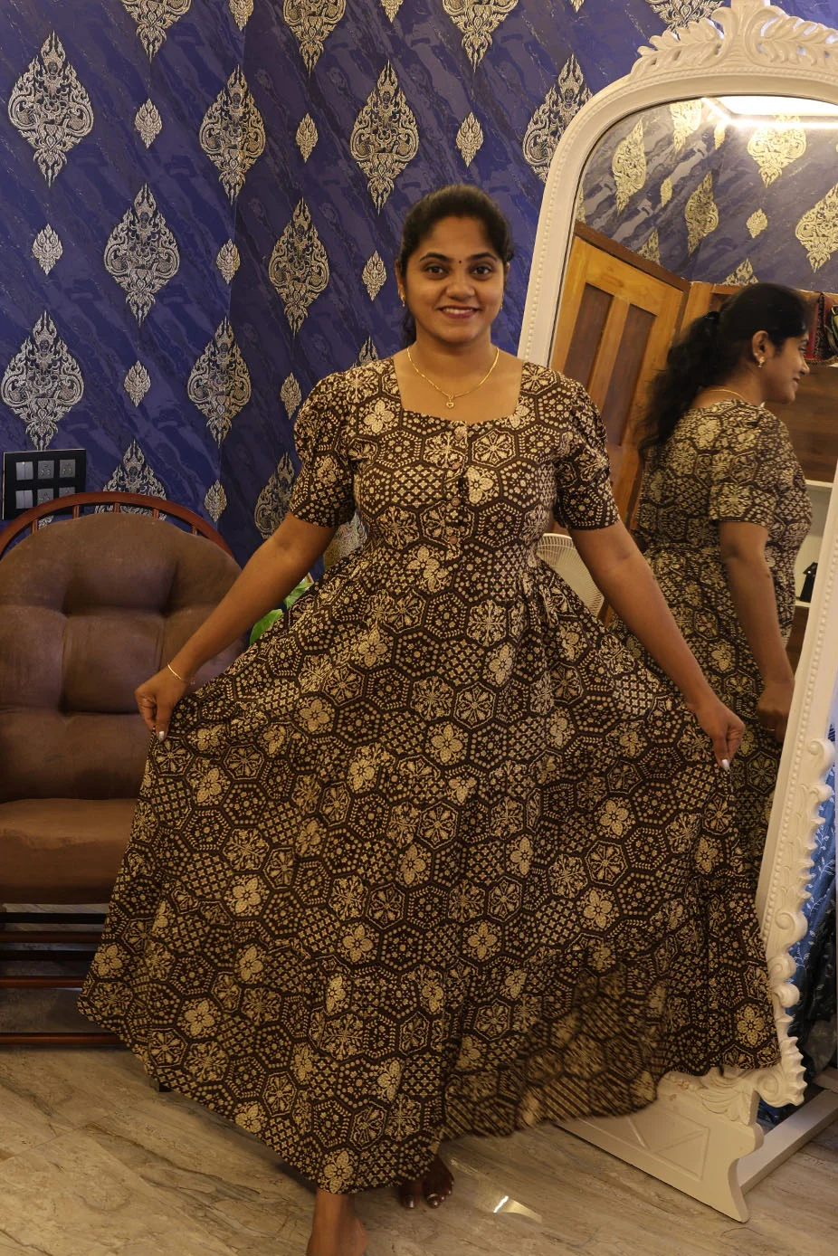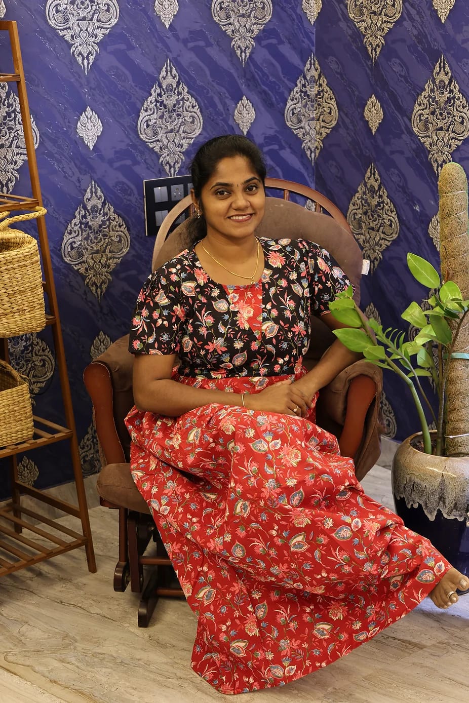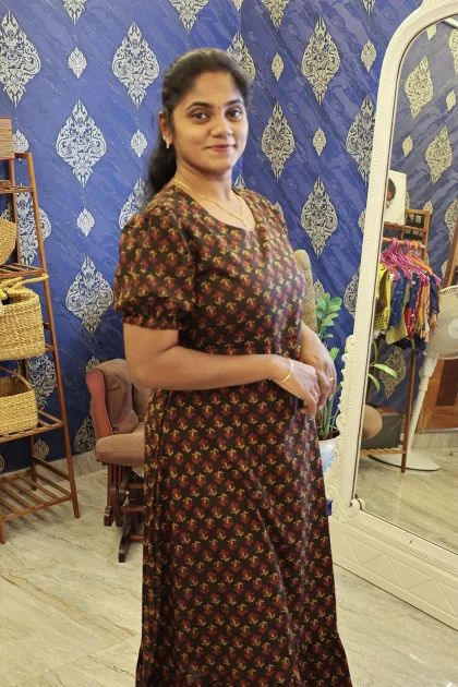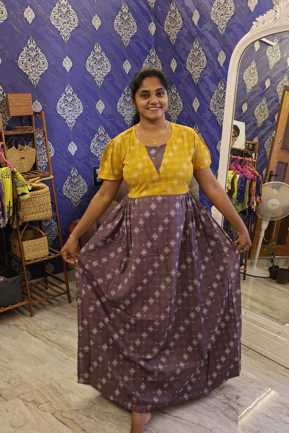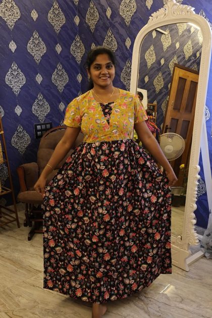 Cotton Nighty Non Feeding Black with Mustard Yellow