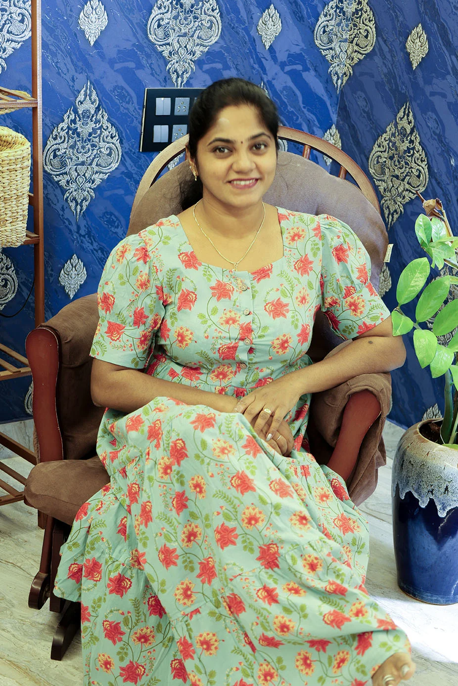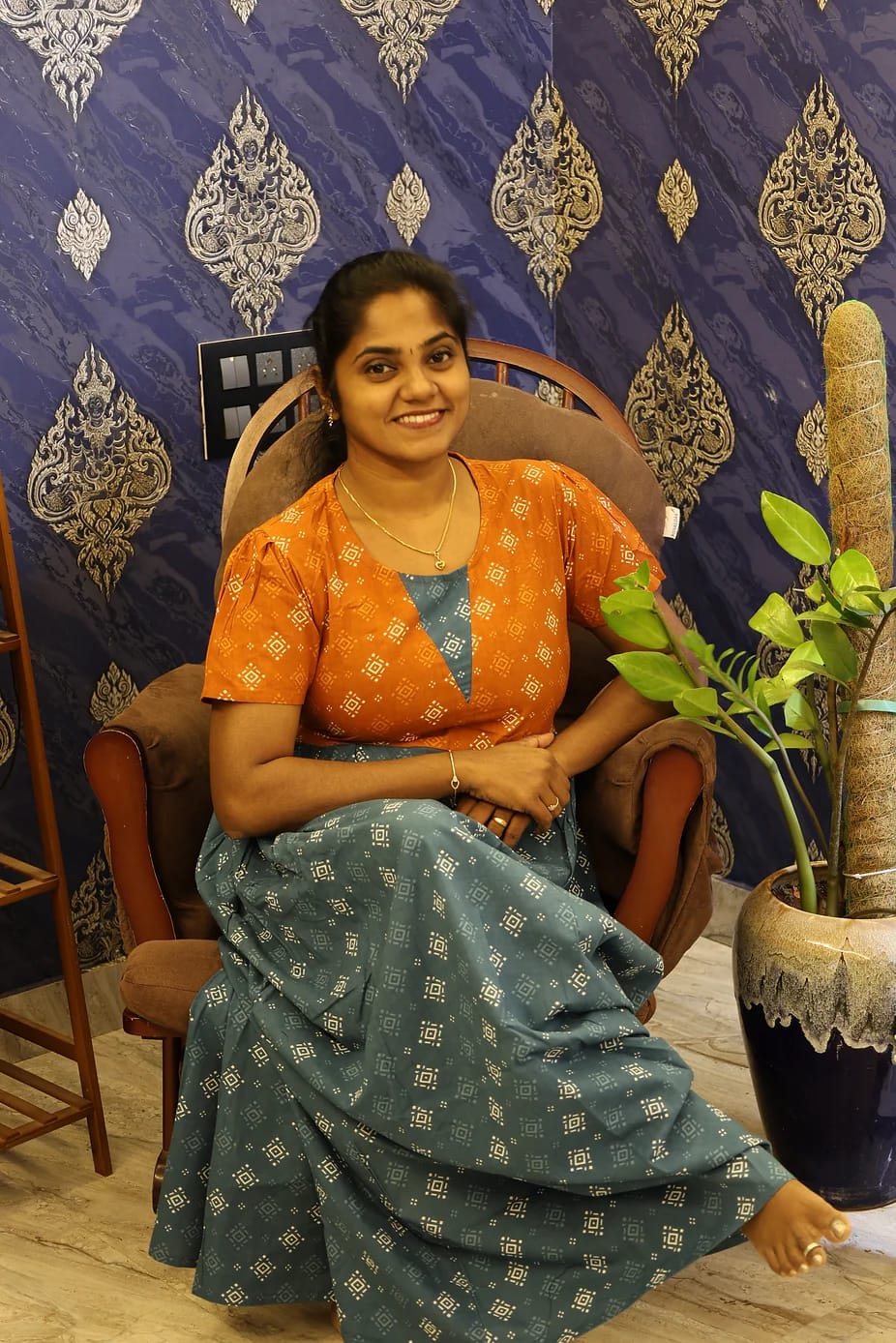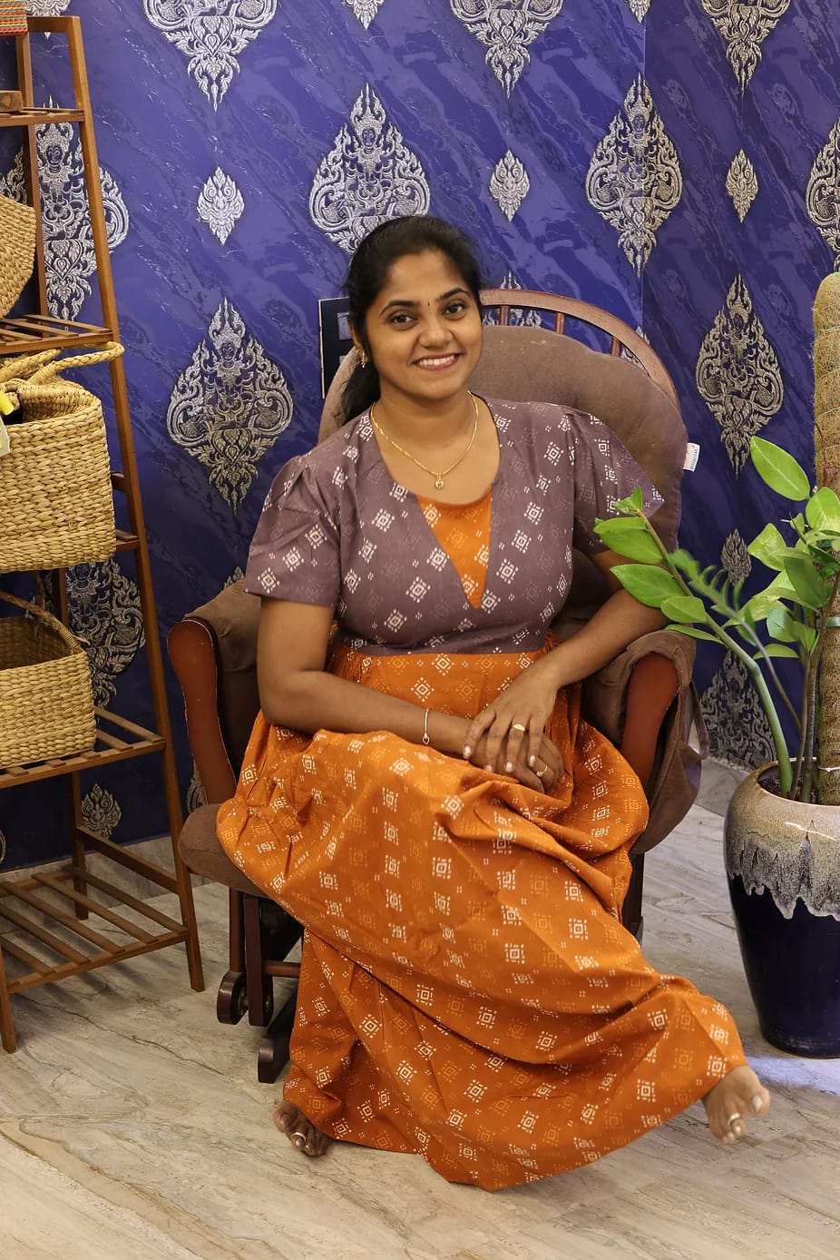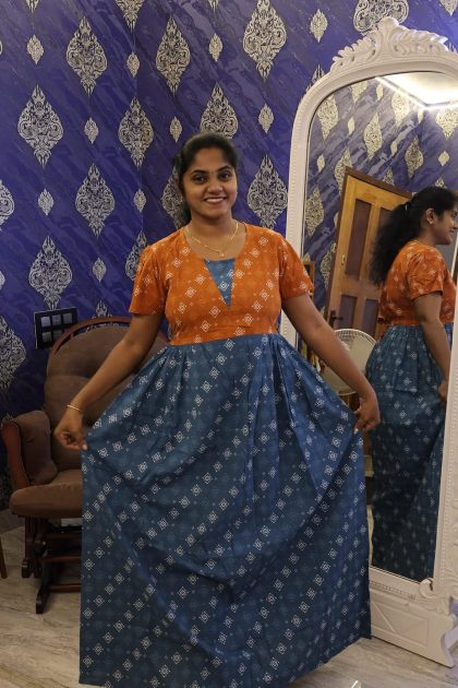 Cotton Stylish Nighty Teal Blue With Rust Orange