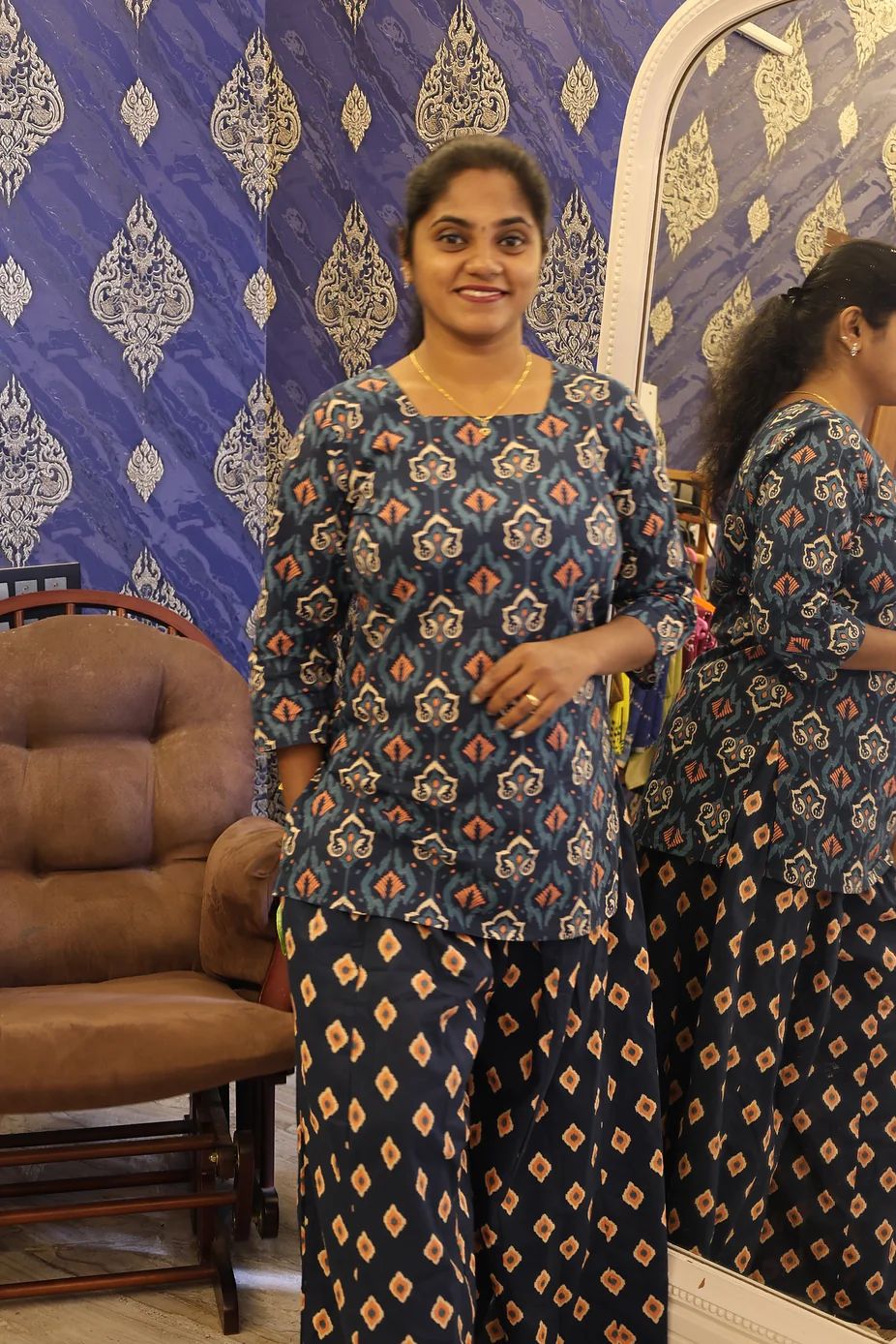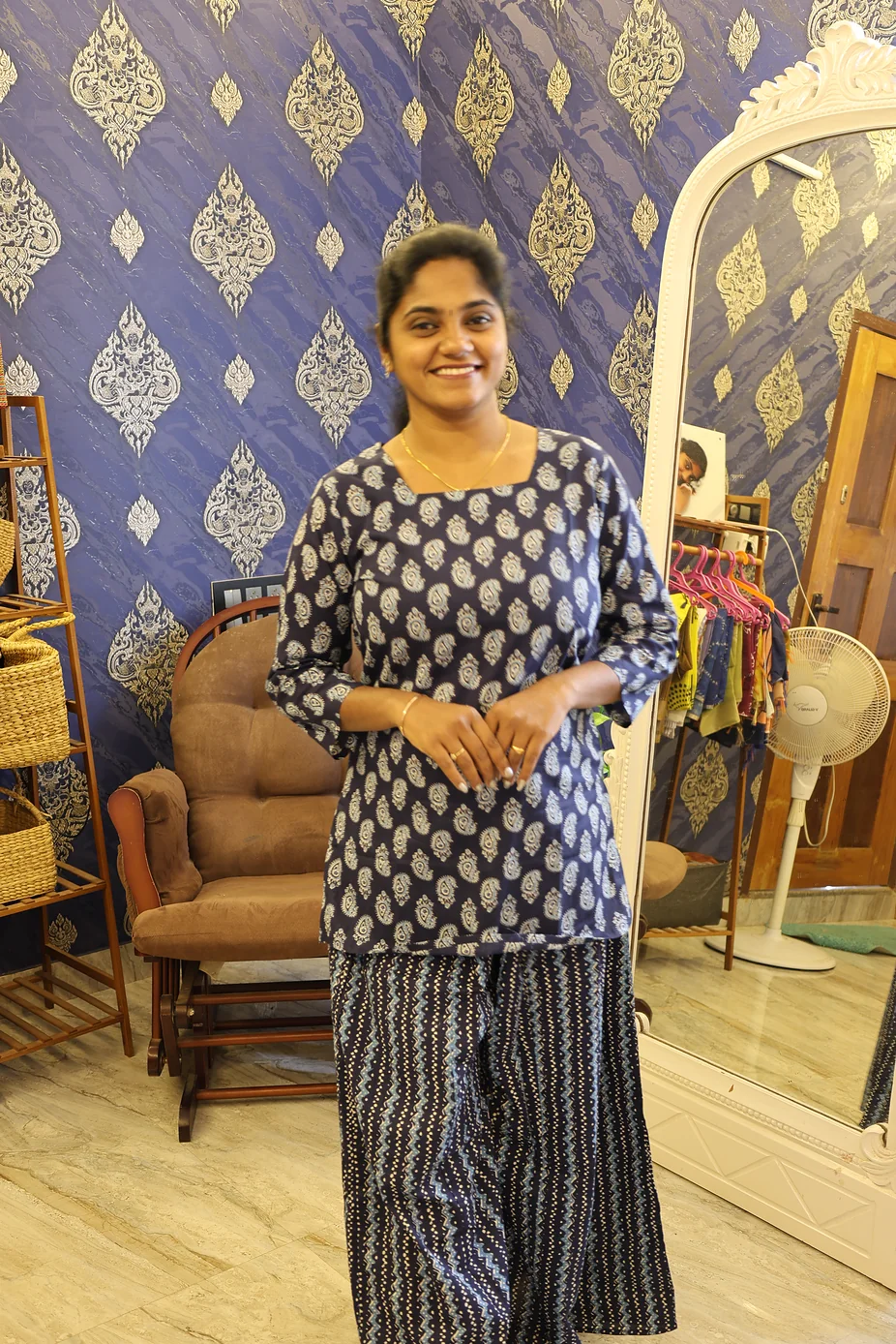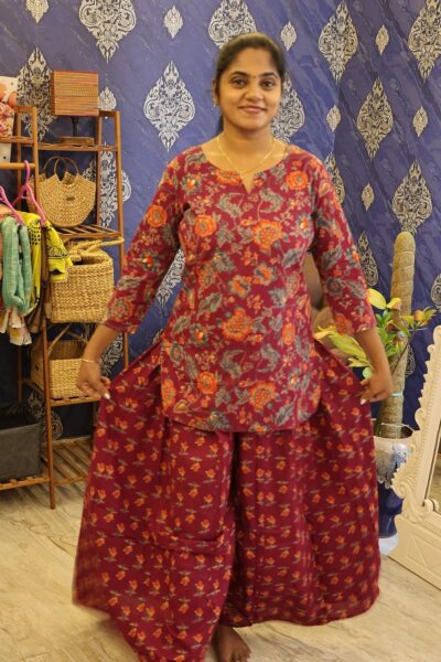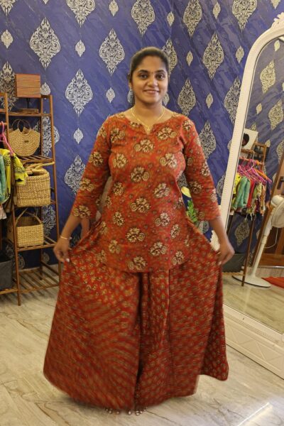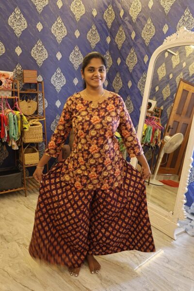 Stylish palazzo set featuring a flowy silhouette and comfortable fit, perfect for everyday elegance and effortless ethnic wear.