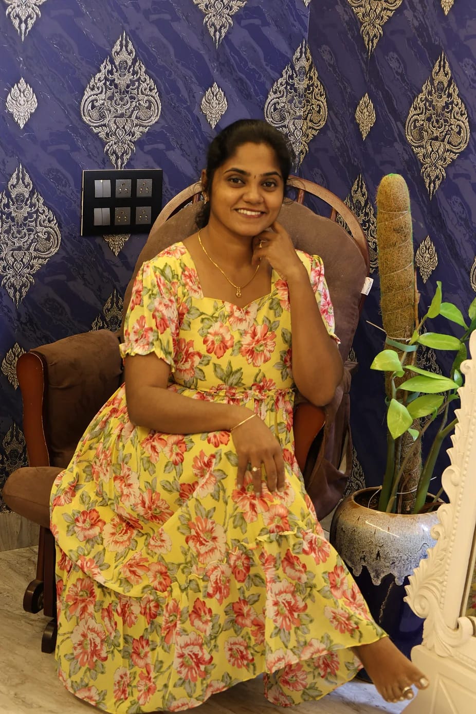 Cotton Stylish Nighty Mustard Yellow With Navy Floral