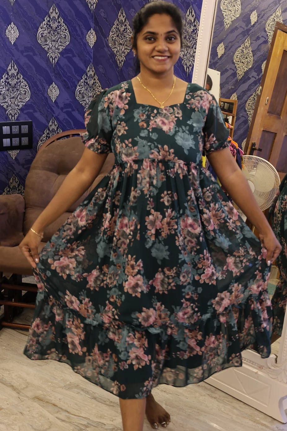 Light, flowy georgette frock with an elegant drape, soft feel, and flattering fit, perfect for parties, brunch dates, and effortless everyday charm.