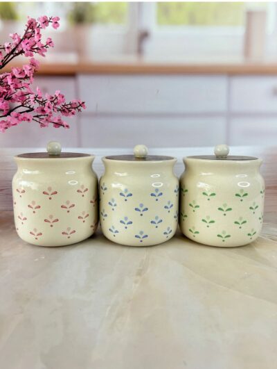 Daisy Flower Colour Sweet Home Airtight Matka Solid Ceremic Canisters (500ml) set of 3