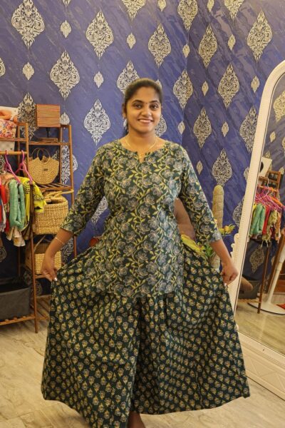 Cotton Palazzo Set Green Floral