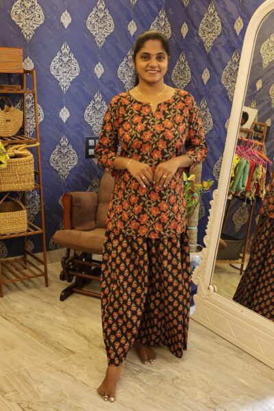 Cotton Palazzo Set Black Rose