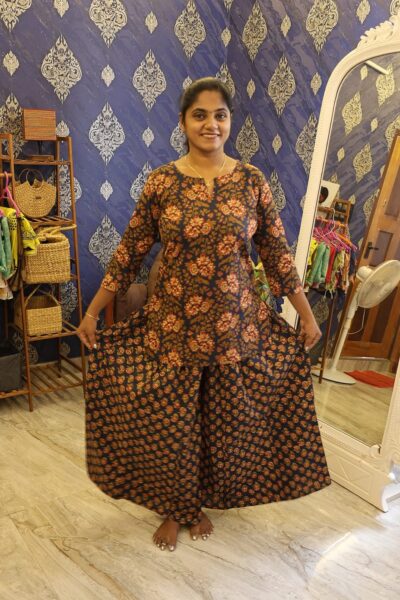 Cotton Palazzo Set Black Potanical