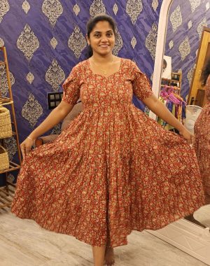 Kalamkari Cotton Frocks Red