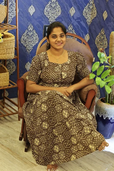 The elegant Angrakha-style neckline adds a graceful touch, while the stylish cuff sleeves enhance the overall look. Thoughtfully designed with functional side pockets, this frock blends fashion with practicality—making it ideal for casual wear and small outings.