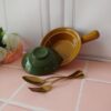 Cuddle Bun Bowl Dish Delight lovely ceramic bowl with handle lid. design rim and a curved handle lid with a knob handle. ceramic bowl is stylish and practical. It’s perfect for serving a variety of dishes, from pasta to salad.