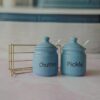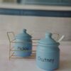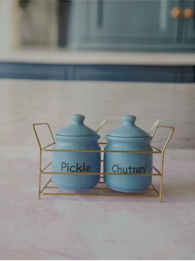 Sea Blue Ceramic Kichi Pickle And Chutney Jar
