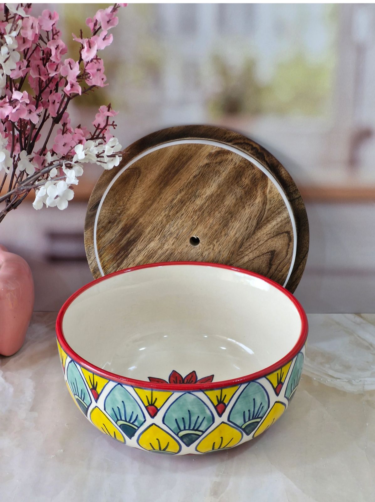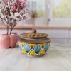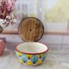 Handpainted Ceramic Bowls with Lid Serving and Storing a touch of elegance to your next meal with these handpainted ceramic serving bowls. The blue round strips design is both stylish and versatile, and the lid ensures that your food stays warm and fresh.