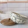Handpainted Ceramic Bowls with Lid Serving and Storing a touch of elegance to your next meal with these handpainted ceramic serving bowls. The blue round strips design is both stylish and versatile, and the lid ensures that your food stays warm and fresh.