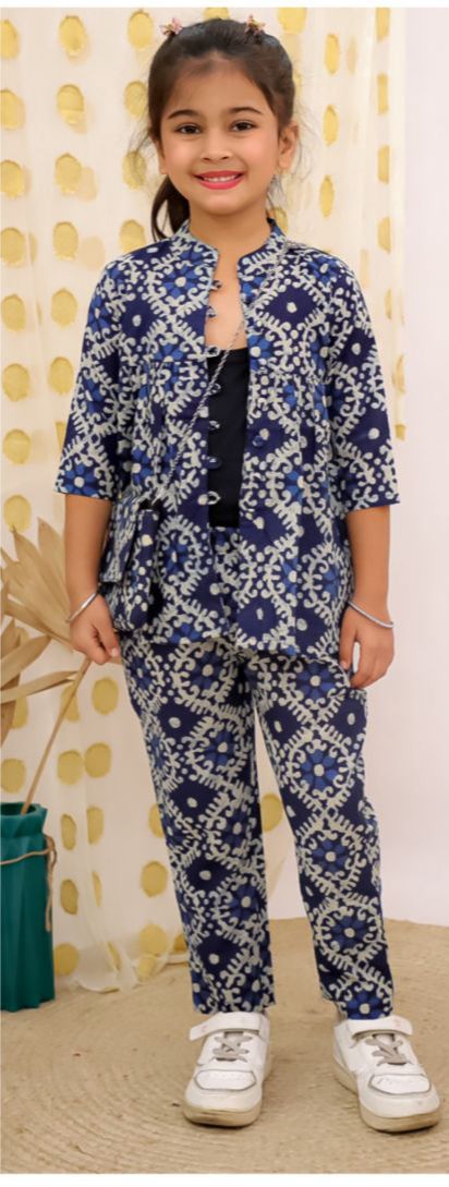Cotton Kids 7 Button Peplum Coord Set Navy Blue