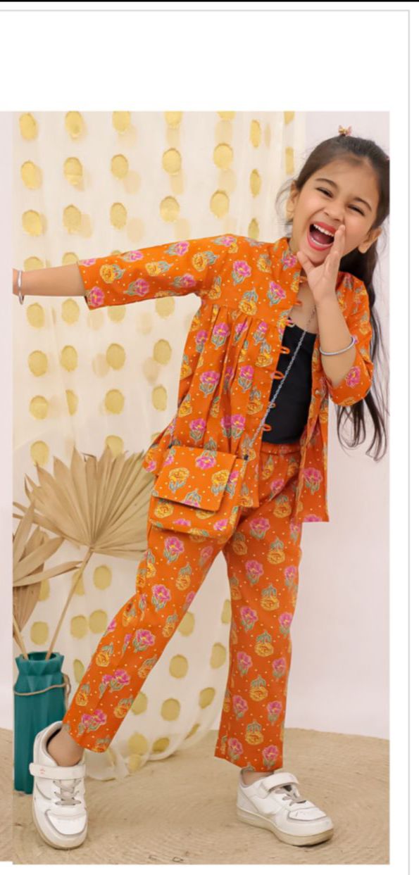 Cotton Kids 7 Button Peplum Coord Set Orange