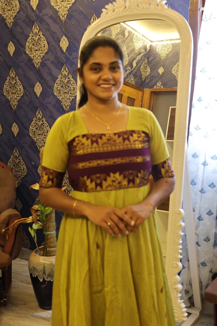 Step into effortless elegance with our beautifully designed Kalyani Cotton Anarkali Top, specially crafted for comfort and style. Featuring a graceful Anarkali top with full inner lining, this outfit offers a rich, flowy look that is perfect for festive occasions and family functions.