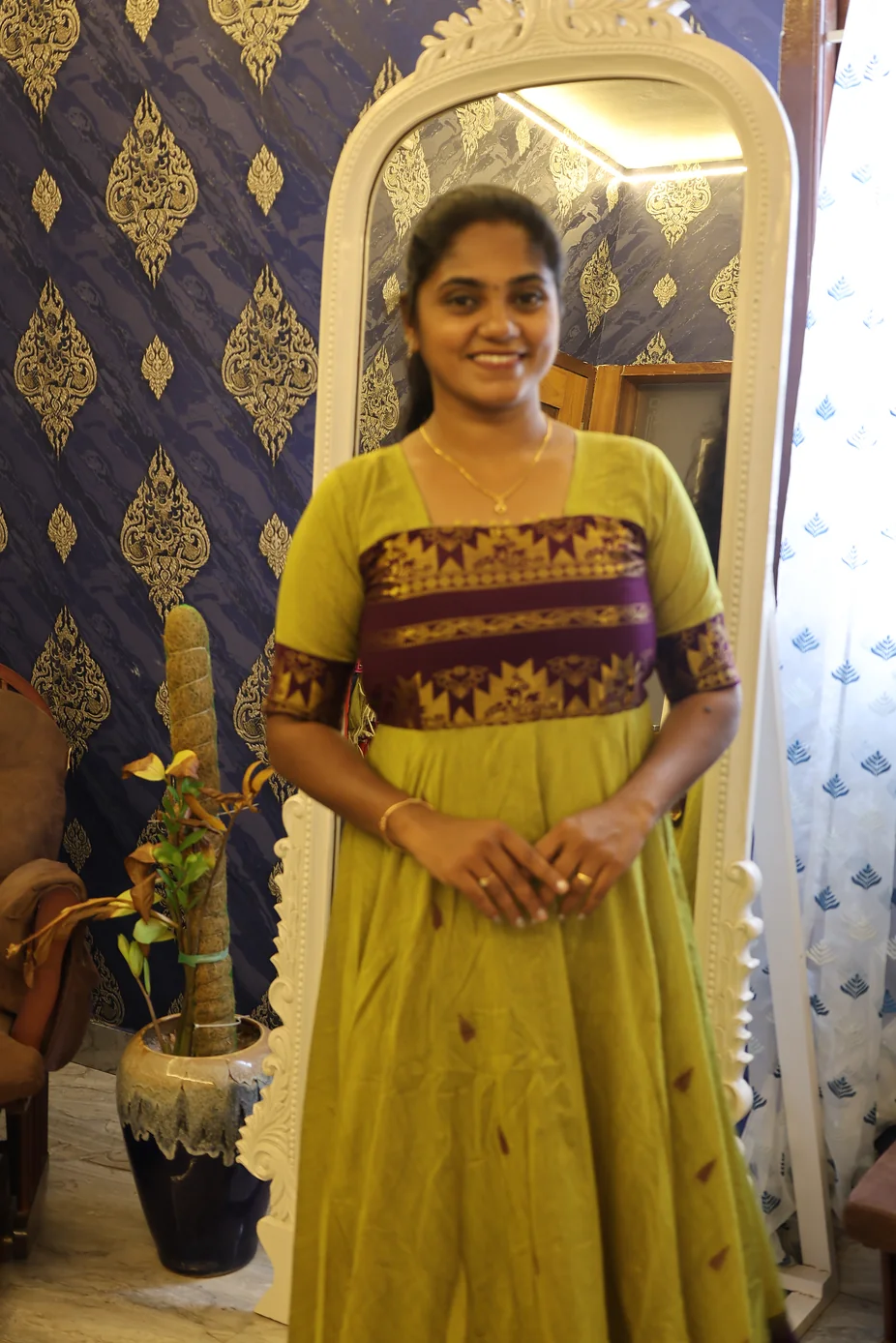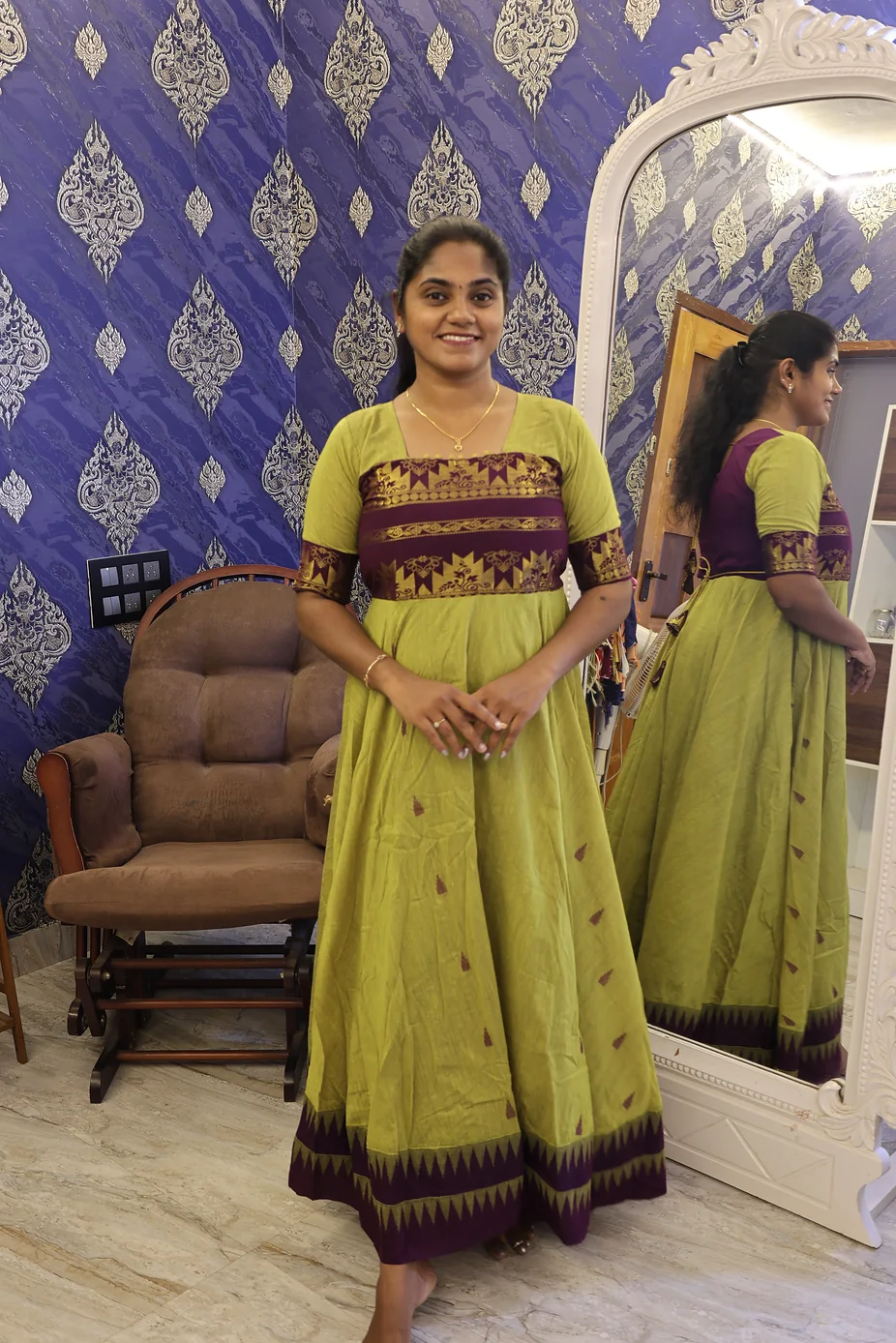 Kalyani Cotton Traditional Anarkali Top Parrot Green With Purple