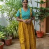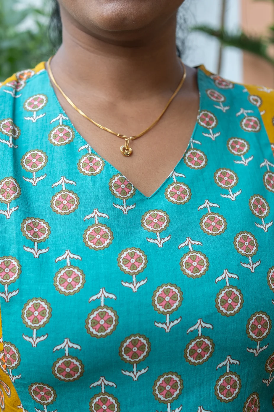Cotton Nighty Non Feeding Mustard Yellow with Mint Green
