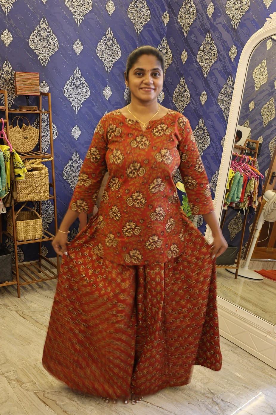 Step into effortless comfort with our beautifully designed Cotton Palazzo Set, made for women who love easy elegance in their daily wear. Featuring a skirt-style palazzo pant, this set gives a graceful flow while ensuring maximum comfort throughout the day.