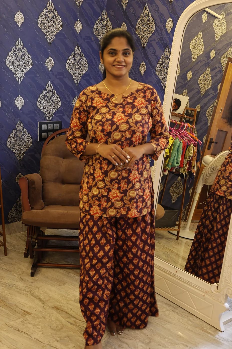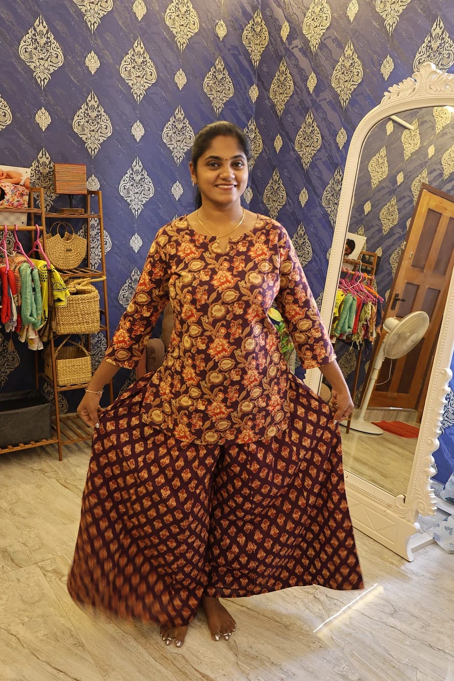 Step into effortless comfort with our beautifully designed Cotton Palazzo Set, made for women who love easy elegance in their daily wear. Featuring a skirt-style palazzo pant, this set gives a graceful flow while ensuring maximum comfort throughout the day.