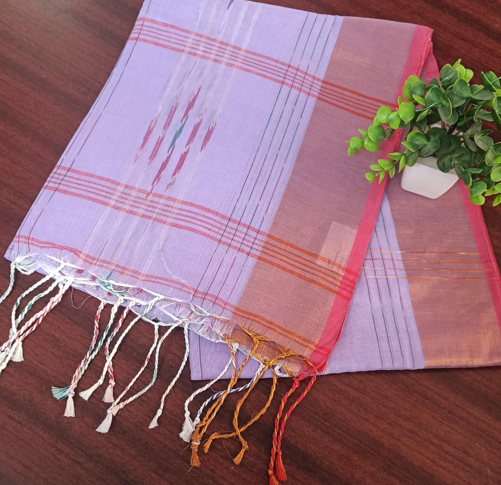 Pallu: Coordinated checked or striped pallu for a balanced look