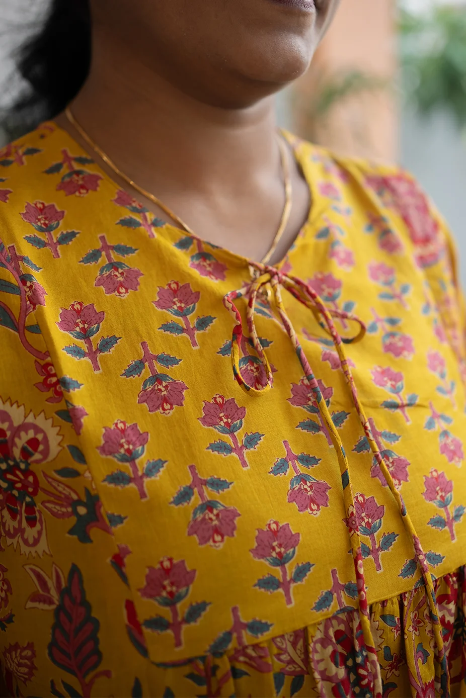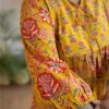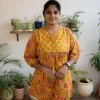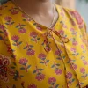 Cotton Round Neck A Line Yoke Short Top Mustard Yellow