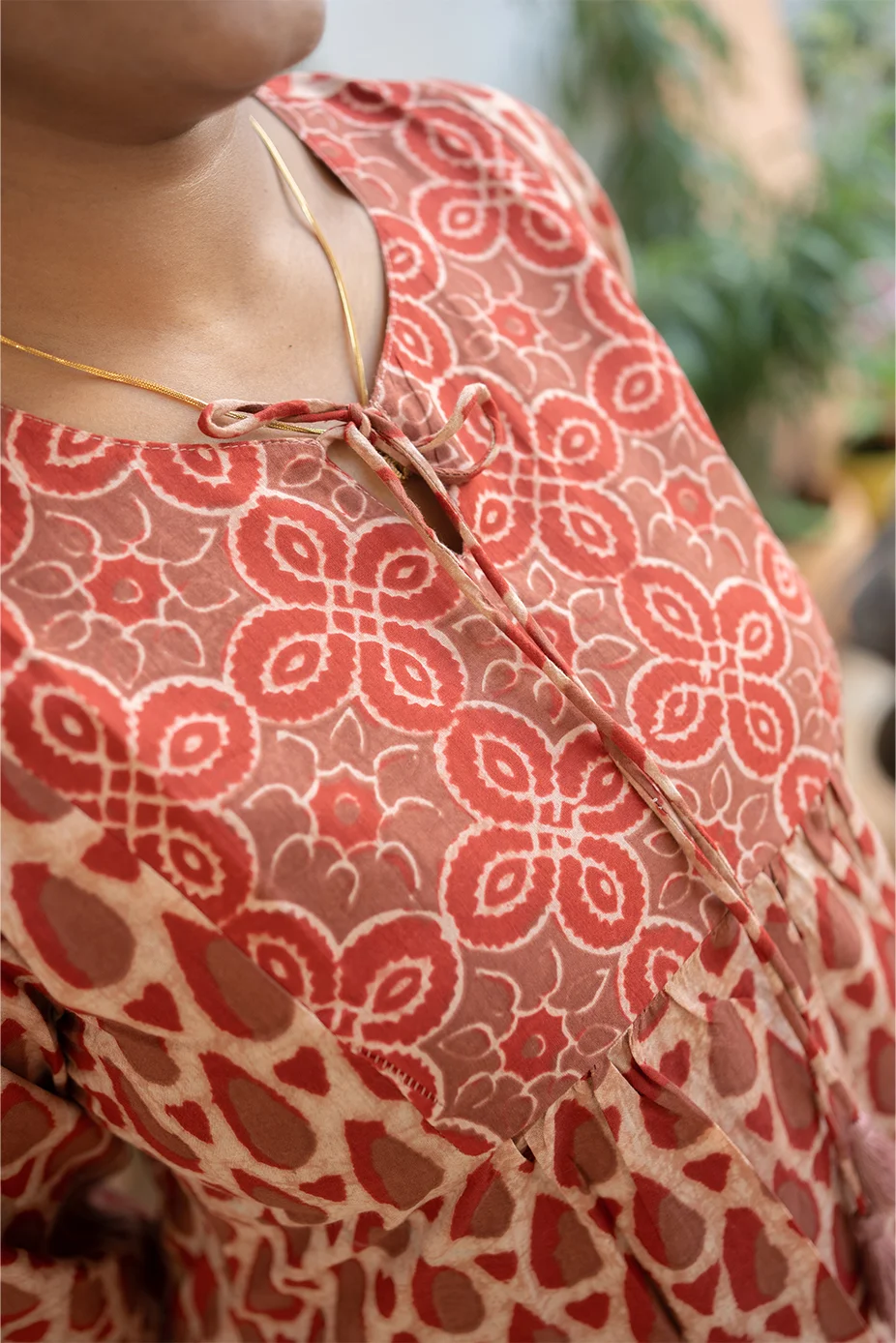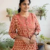 Cotton Round Neck A Line Yoke Top Red