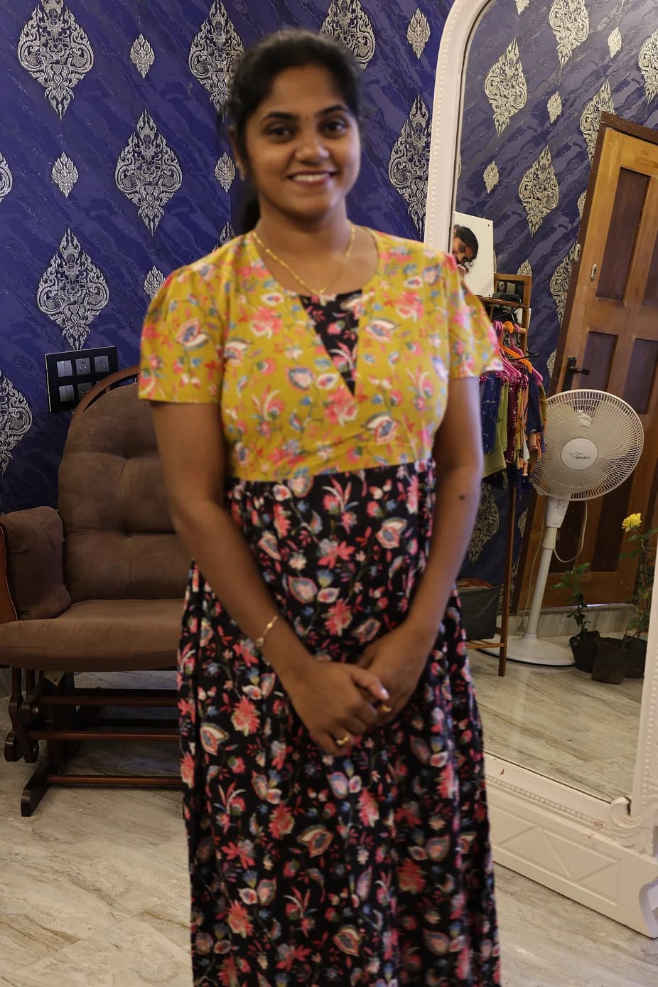 Cotton Stylish Nighty Black With Mustard Yellow Floral