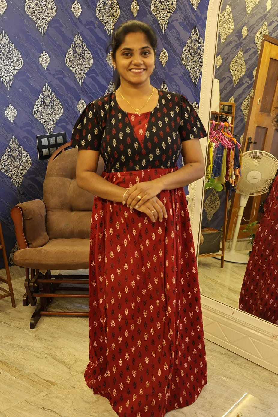 This nighty features a unique coat-style look with a salwar-cut pattern, giving it a trendy and sophisticated appearance. The stylish design allows you to step out confidently without hesitation — perfect for home wear and quick outings.