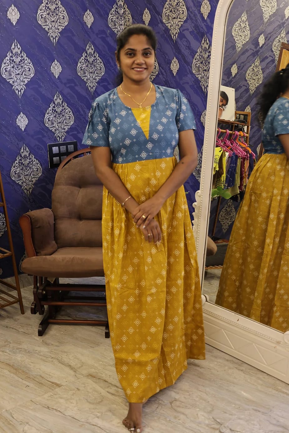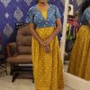 CottonStylish Nighty Mustard Yellow With Teal Blue